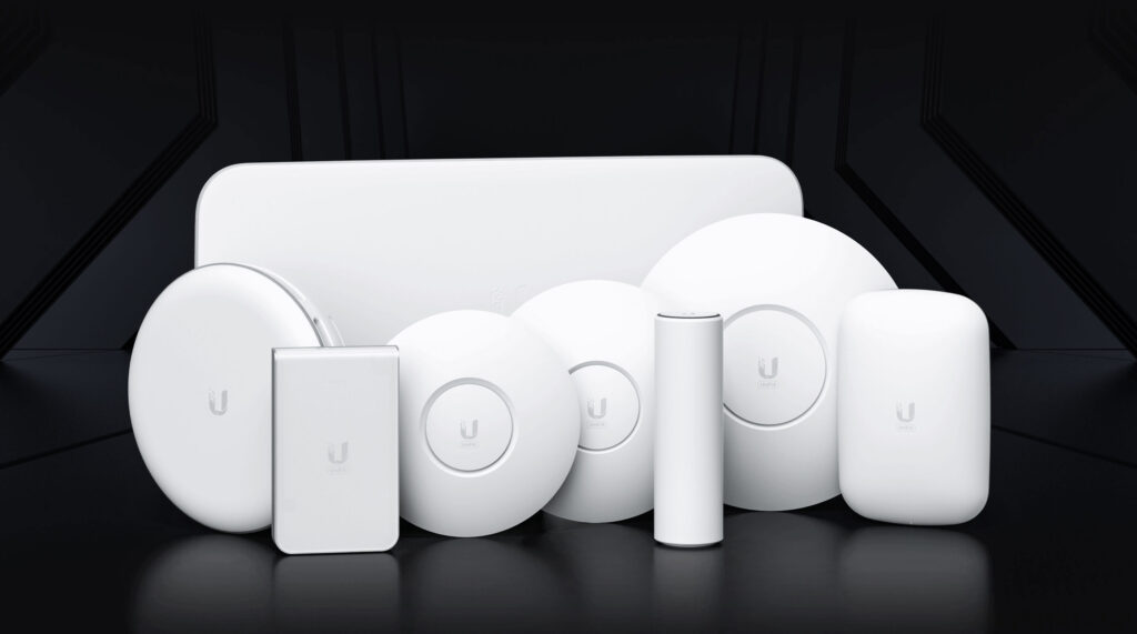 În ceea ce privește rețeaua wireless, utilizăm Access Point-uri de la Ubiquiti, din gama Unifi, montate pe tavan. Aceste dispozitive avansate, compatibile cu tehnologia WiFi 6, oferă o acoperire excelentă și performanțe ridicate. În funcție de buget și necesități de acoperire, alegem varianta Lite, Long Range sau PRO din această gamă.