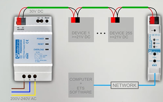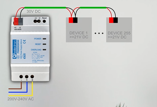 Sursa de Alimentare: Oferă tensiunea necesară pentru linia de comunicație KNX și alimentează dispozitivele conectate.